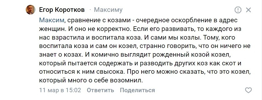 Моя переписка с Егором - один их ярких