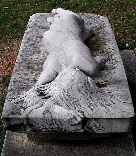 выглядит так, будто просто уснула на могильной плите.