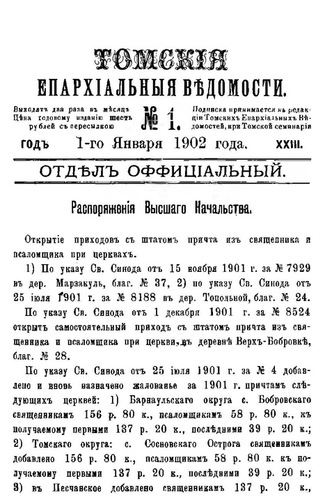 - Томские епархиальные ведомости № 01, 1902