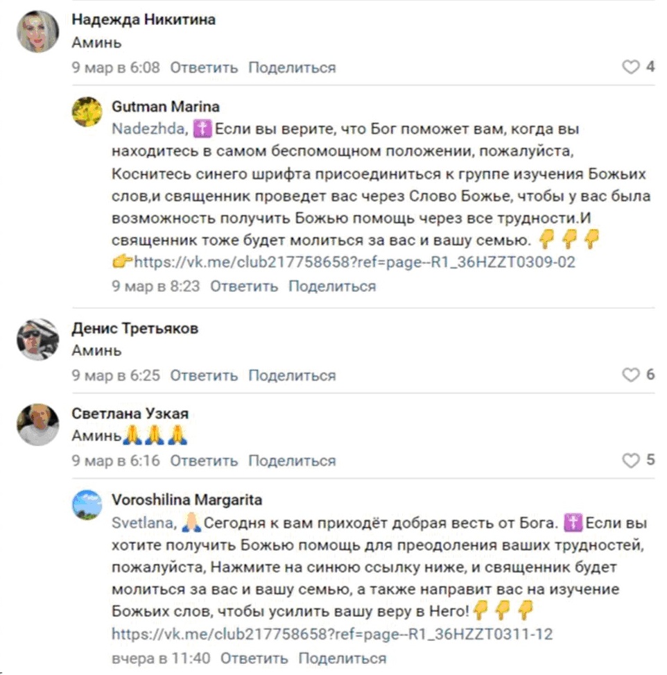 соцсетях с такими предложениями, стоит секта "Церковь
