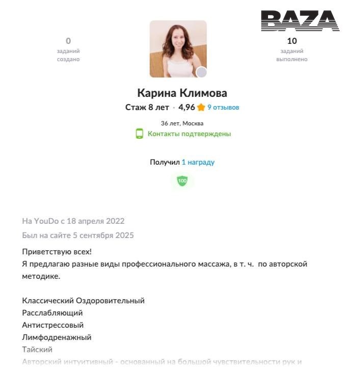 своём личном аккаунте предлагала услуги массажиста, а