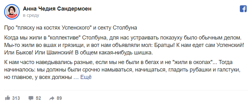 бабушки". Анна провела в секте Столбуна 6 лет, с 1981 по
