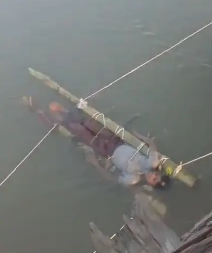 привязать ребенка к бамбуковым столбам и погрузить его в